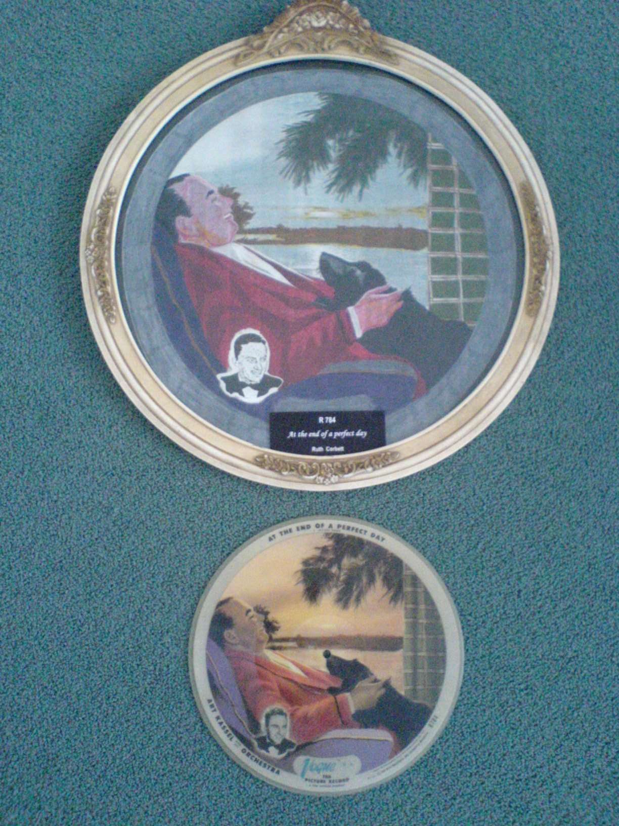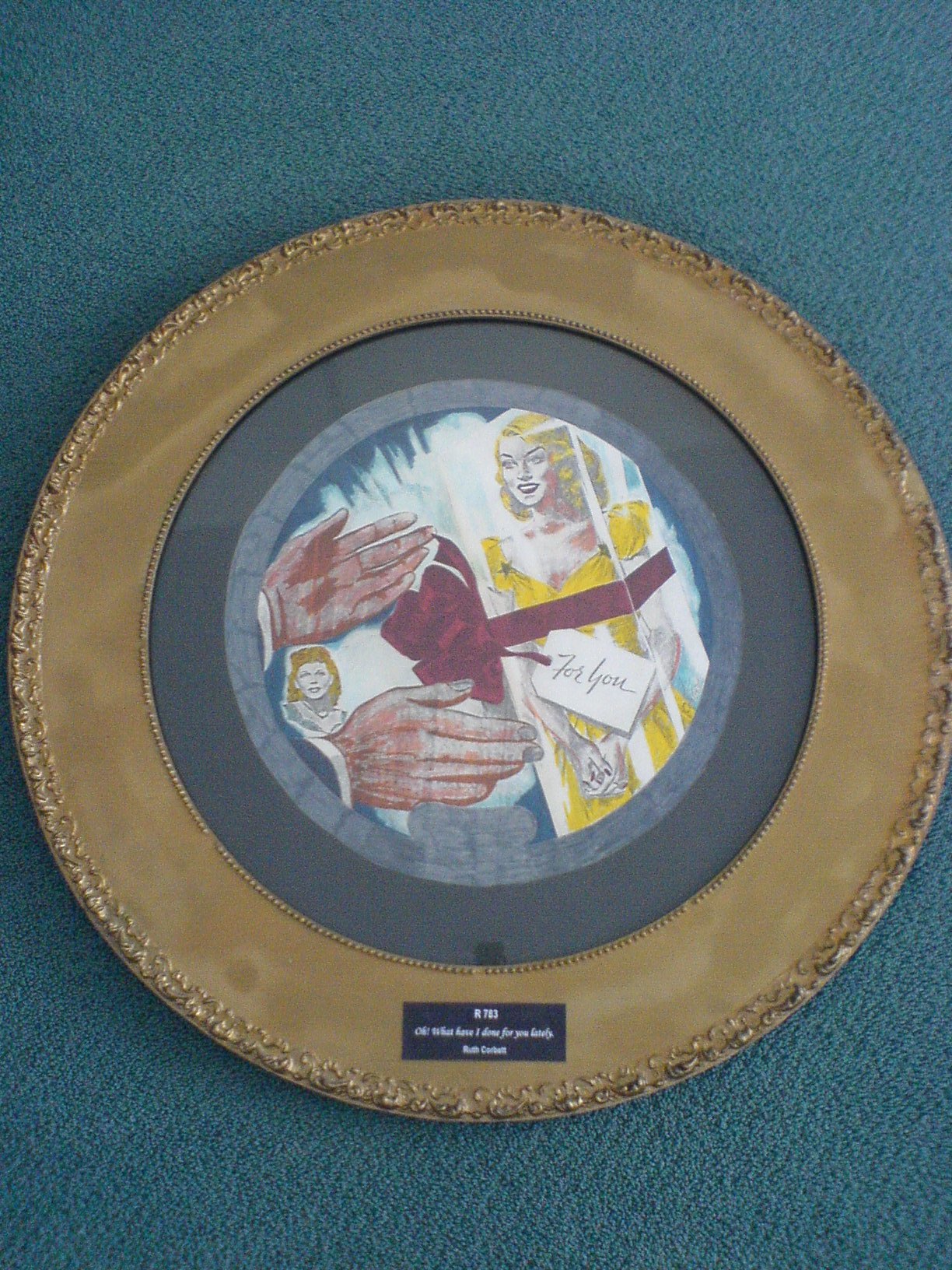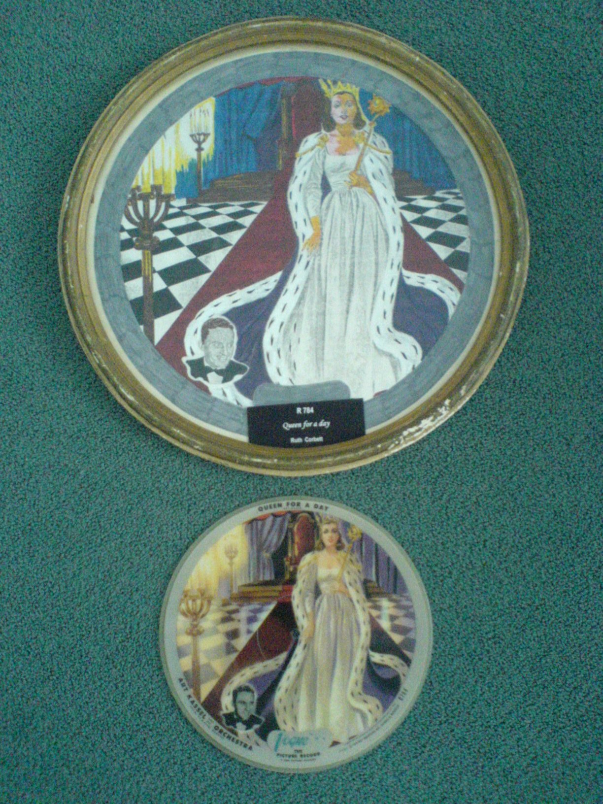 Vogue ArtworkThe illustrations used on many Vogue picture records are signed by the artist. Ed Basl, a Vogue picture record collector, undertook the effort to track down the persons behind those signatures. Ed kept a record of each of these searches, and has made that information available for our use. Thanks to Ed's efforts, Richard Harker, Will Wirts, Sprink, Corbett, R. Forbes, and M. Kanouse are no longer names unattached to persons. We hope to have Ed's narration of his searches available in the very near future. There have often been rumors that the original artwork for some of the illustrations still existed - somewhere. Thanks to R.C. Leggitt, we are able to share with you this picture of an incomplete water-color painting - by artist Ruth Corbett - that was in progress when Sav-Way went out of business. It was intended to be used in a record that would have followed "Queen for a Day". The portrait on the left side of the record appears to be that of Joan Edwards. Could this have been the "missing" R783? Click on the thumbnail image below for the full-size version.