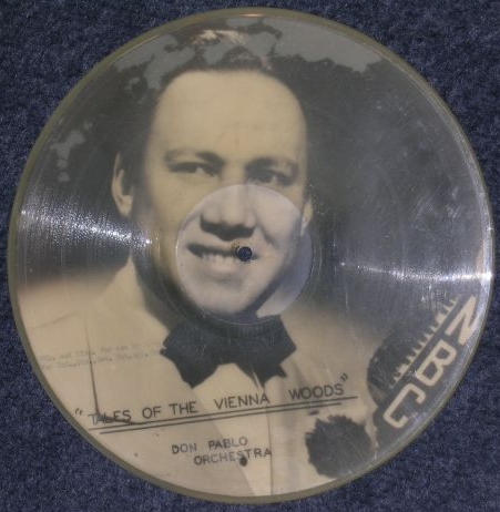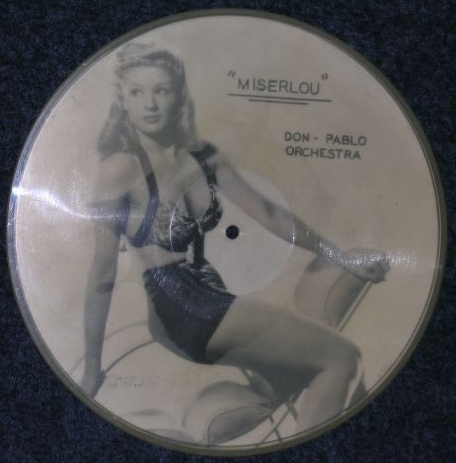 A lesser-known and rarely-seen picture record produced by Sav-Way features the Don Pablo Orchestra performing "Miserlou" on side A and "Tales of the Vienna Woods" on side B. This record has a "cheese cake" style pose on side A and a head shot of Don Pablo on side B. Side B has typewritten text reading "Mfg. and lisc. for use by Sav-Way Ind., Inc., Det. Pat. app. for" visible to the left of Don Pablo's bow tie. It is believed that this record may have been intended for an NBC Promotion that was never released (see the NBC logo on the microphone on the B side). Only two copies of this record are known to exist. (The song title "Miserlou" is more frequently written as "Misirlou".)