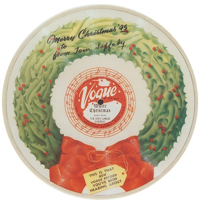 In the fall of 1945 Sav-Way produced a limited pressing of a record promoting the "New Vogue Record You've Been Hearing About". One side contained an illustration of a wreath with the legend "Merry Christmas '45 to (blank) from Tom Saffady", while the other side contained an early printing of the illustration for "The Bells of St. Mary's". This illustration is interesting in that it has a brown border and no "R" number; the colors also differ somewhat from the final printing used in the well-known R710.